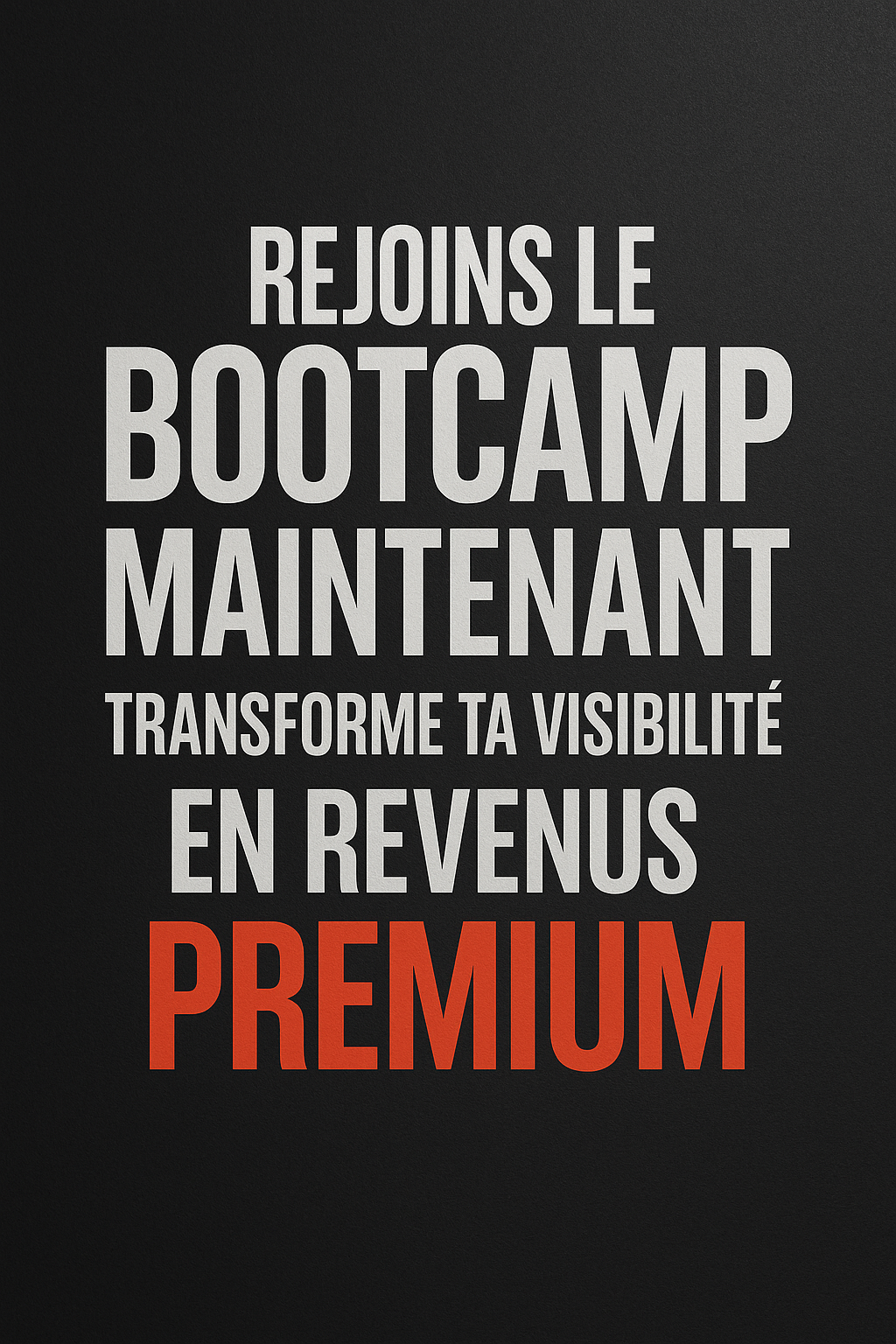 Rejoins le Bootcamp maintenant et transforme ta visibilité en revenus premium.